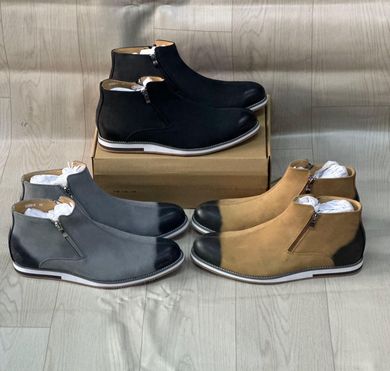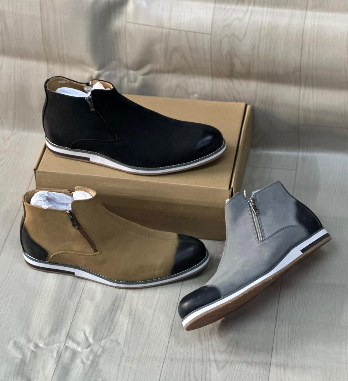 Disponibles en trois couleurs distinctes — un noir classique, un gris sophistiqué, et un beige terreux — vous trouverez forcément la paire qui complètera votre garde-robe.