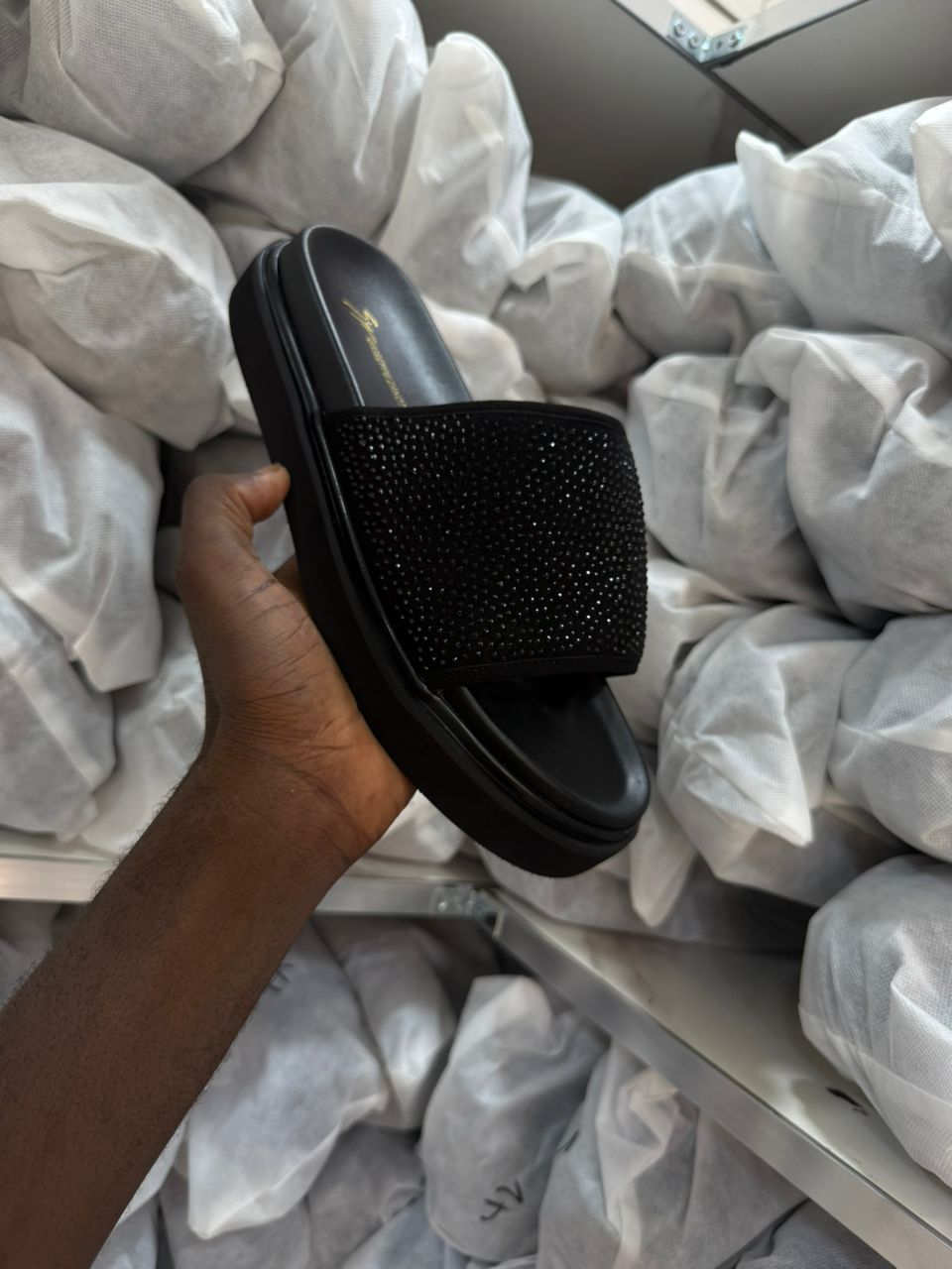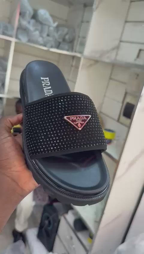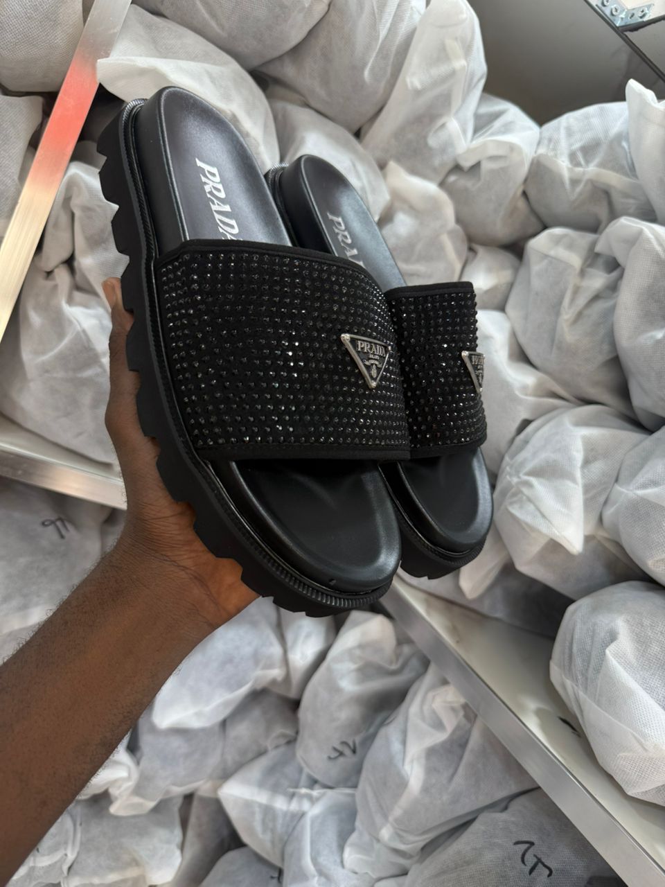 - Prada : Pour un look plus glamour, nos sandales Prada sont ornées de cristaux étincelants. Ces chaussures sont parfaites pour ceux qui cherchent à ajouter une touche de luxe et d'éclat à leur style quotidien.